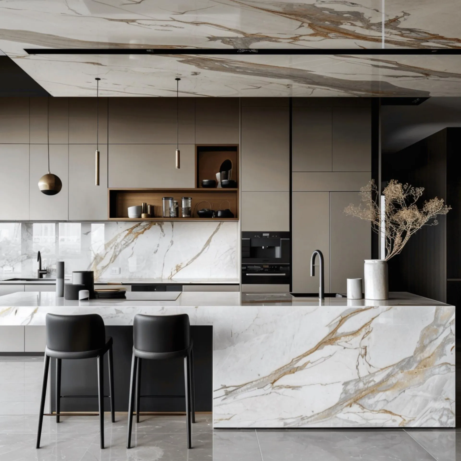 ペニンシュラ型キッチンは、一方が壁に接しもう一方が開放されている半島のような形状が特徴です。対面型キッチンほどの大きなスペースがなくても設置できるため、中小規模の新築や注文住宅でも取り入れやすいデザインです。また、収納キャビネットを豊富に設けることで収納力を大幅にアップさせられる点も魅力です。効率的な作業空間とデザイン性を両立させた、最新のキッチントレンドにふさわしいレイアウトと言えます。