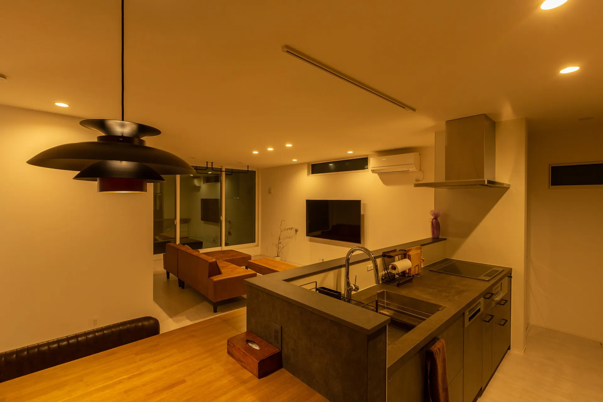さらに、照明計画も見逃せません。L字型の形状は奥まったエリアができるため、明暗の差が出やすいのが特徴です。そのため、間接照明やスポットライトを効果的に取り入れることで、リビング全体を暖かく明るい空間として仕上げることができます。